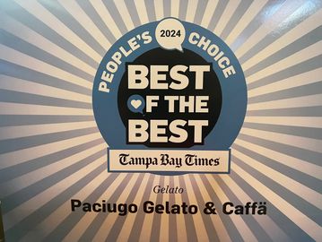Paciugo St Petersburg has been awarded the BEST GELATO in Tampa Bay for many years in a row by the People's Choice in the Tampa Bay Times. We have also been awarded AWARD OF EXCELLENCE from Trip Advisor, Readers's Choice BEST GELATO by St Pete Life Magazine, among other awards. Come see why Paciugo Gelato St Pete has received these awards. Great Gelato - Great Service.