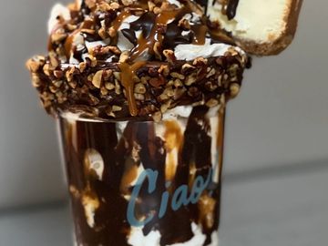 It is always Colossal Sundae time at Paciugo! Texas Pecan Sea Salt Caramel smothered in caramel, chocolate, pecans, whipped cream and topped with cheesecake. YUM!!!!